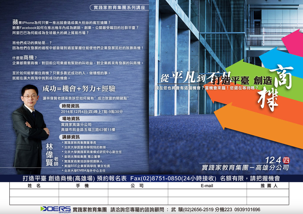 【免費講座--高雄場】從平凡到不凡 創業商機 打造平台的成功模式
