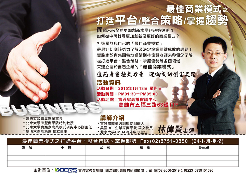 最佳商業模式之打造平台/整合策略/掌握趨勢