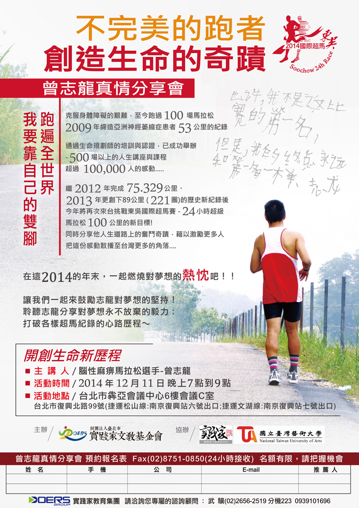 【免費講座】不完美的跑者 創造生命的奇蹟--曾志龍真情分享會