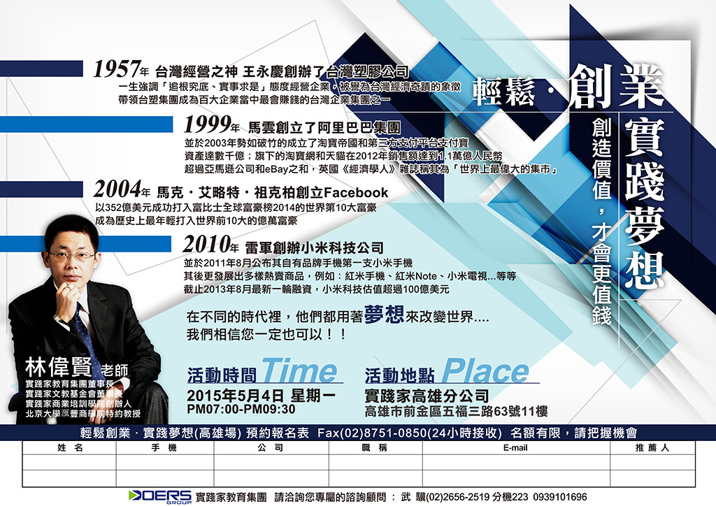 ˙美國BSE企業家商學院國際課程的華文版創辦人
