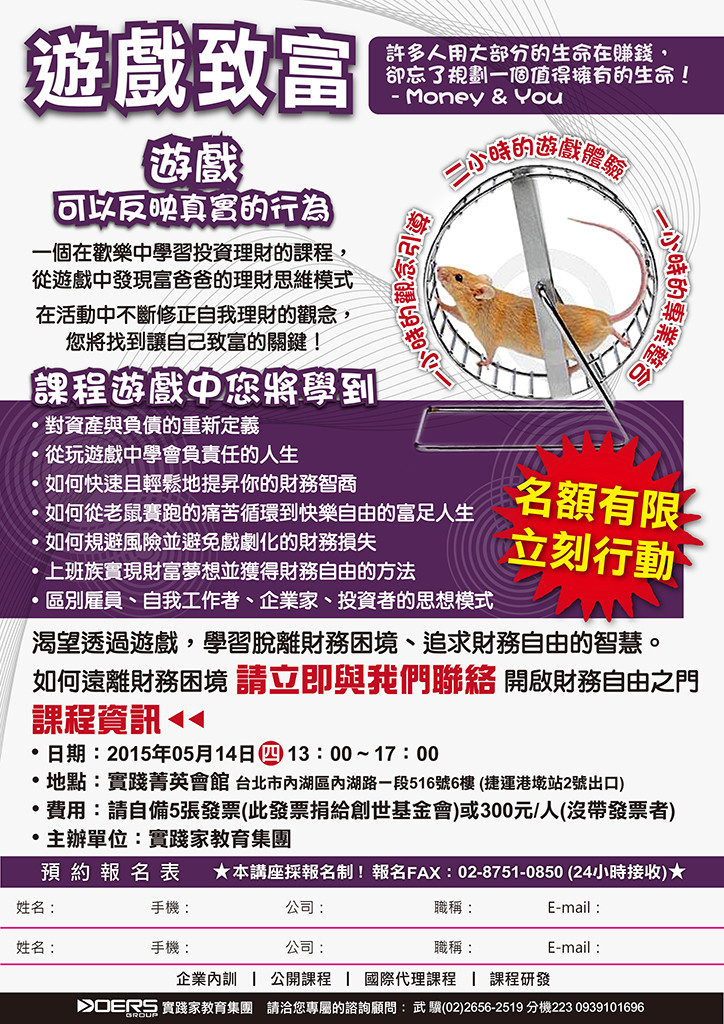 在活動中不斷修正自我理財的觀念,您將找到讓自己致富的關鍵!