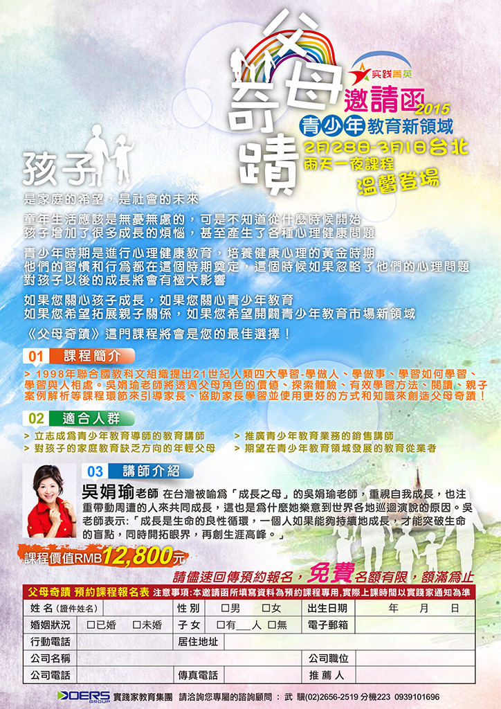 費 用:價值NT64000元,這次實踐家教育集團回饋社會,一毛錢都不拿,免費開課,有志於青少年教育的您,還不報名嗎?(名額有限 課程送完為止)